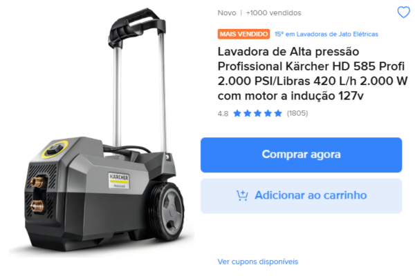 - Vai abrir um lava jato de bairro e quer sossego? Compre a Kärcher HD 585.