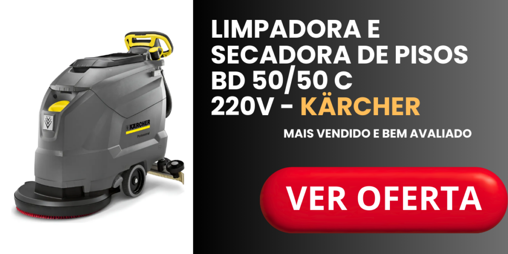 Escolher a melhor lavadora e secadora de piso elétrica depende diretamente do tamanho da sua área e do tipo de piso. Para a maioria dos comércios e pequenas indústrias, a Kärcher BR 30/4 (C ou EP) é a escolha “no-brainer” pela versatilidade do cabeçote articulado e capacidade de limpar rejuntes.